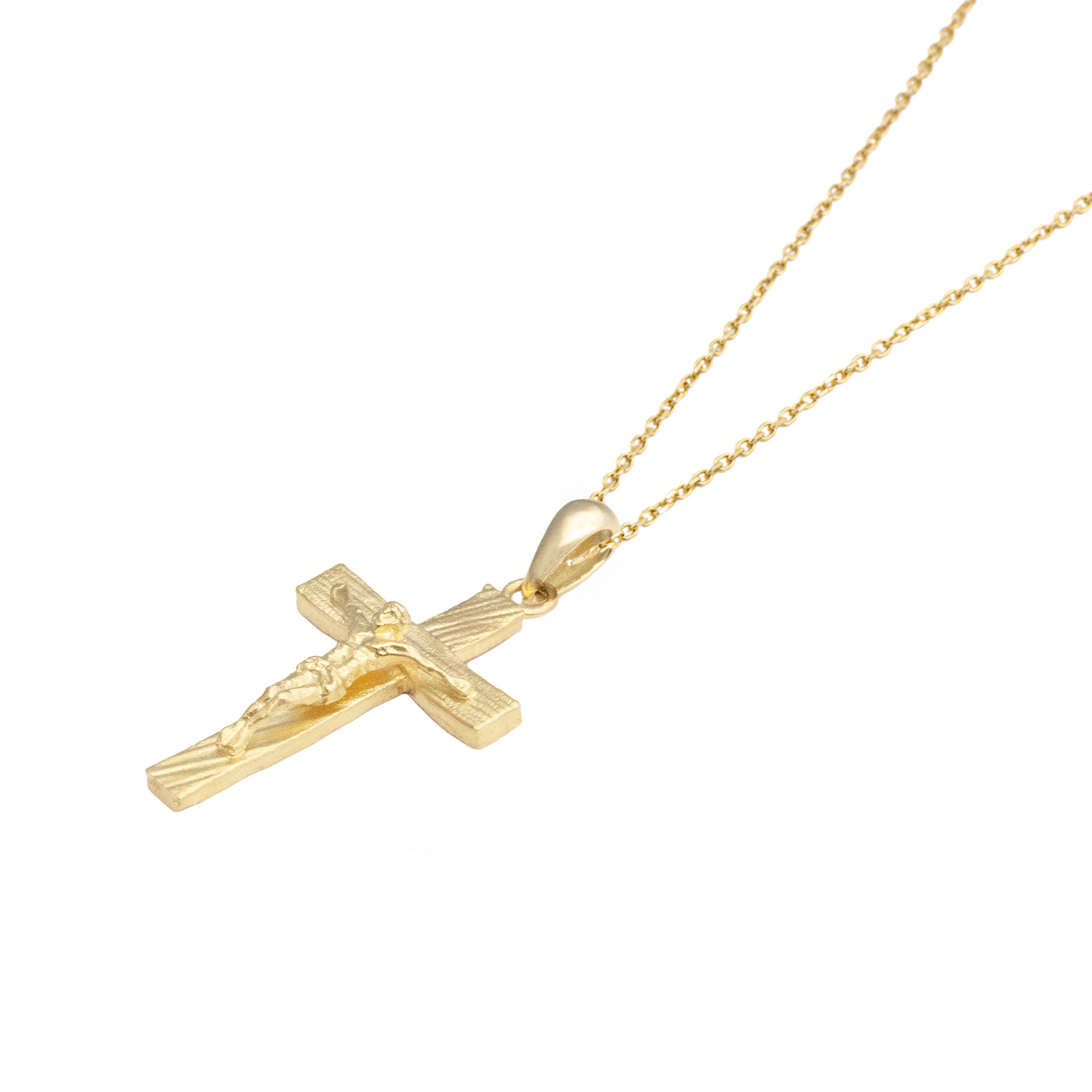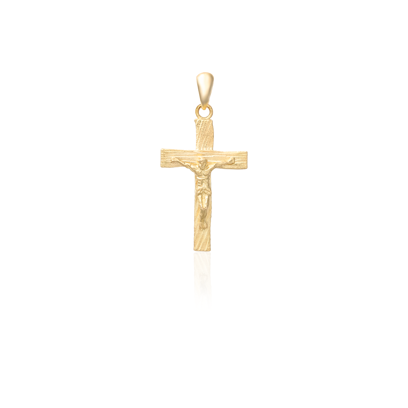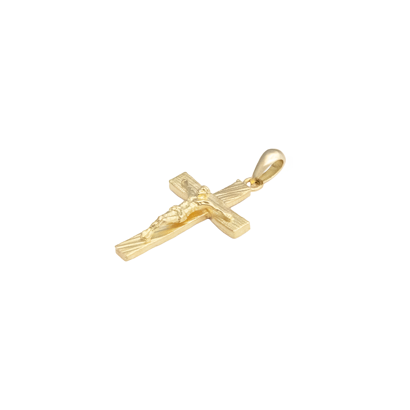This pendant features a cross with striped detailing and a finely crafted figure of Jesus at the center. It pairs effortlessly with any chain for daily wear.