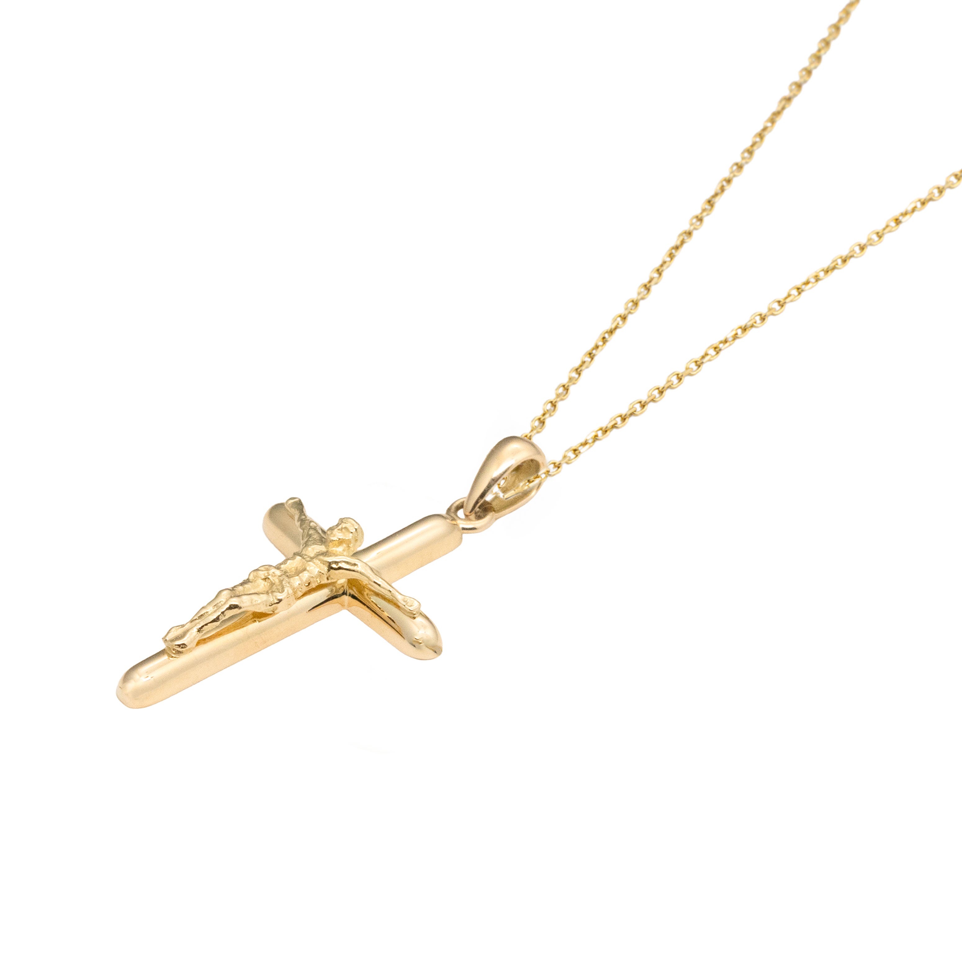 This pendant features a classic cross with a finely crafted figure of Jesus at the center. It pairs effortlessly with any chain for daily wear.