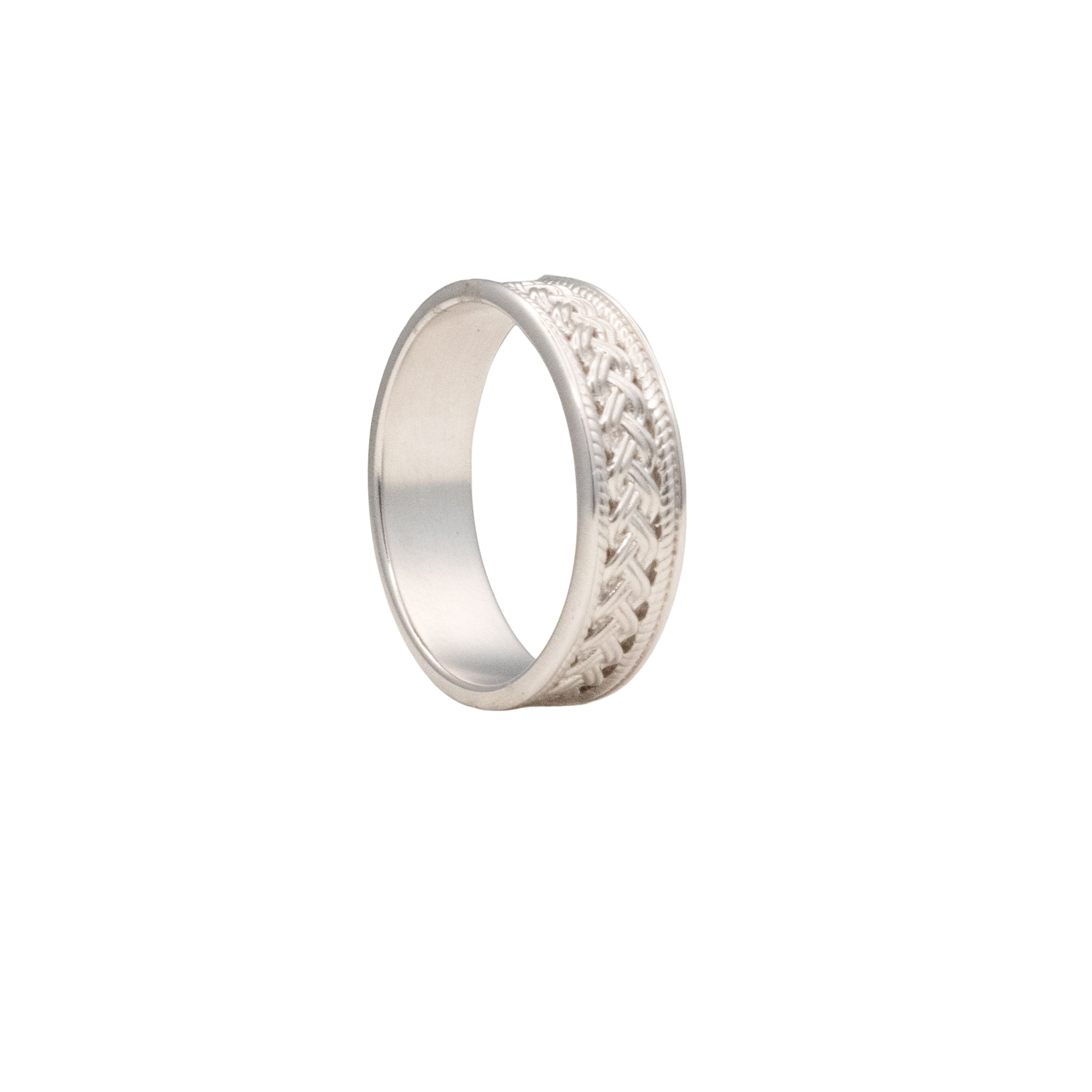 This ring features a white gold band with a braided design running through the center. The braid design adds texture and character, while the polished edges keep the look refined and masculine. Perfect for everyday wear, this ring blends craftsmanship with contemporary style.